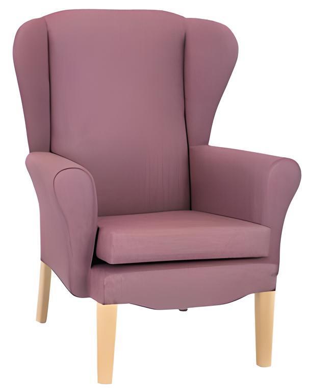 - A classic wingback armchair with a high backrest and elegantly curved sides, offering a timeless and inviting silhouette.