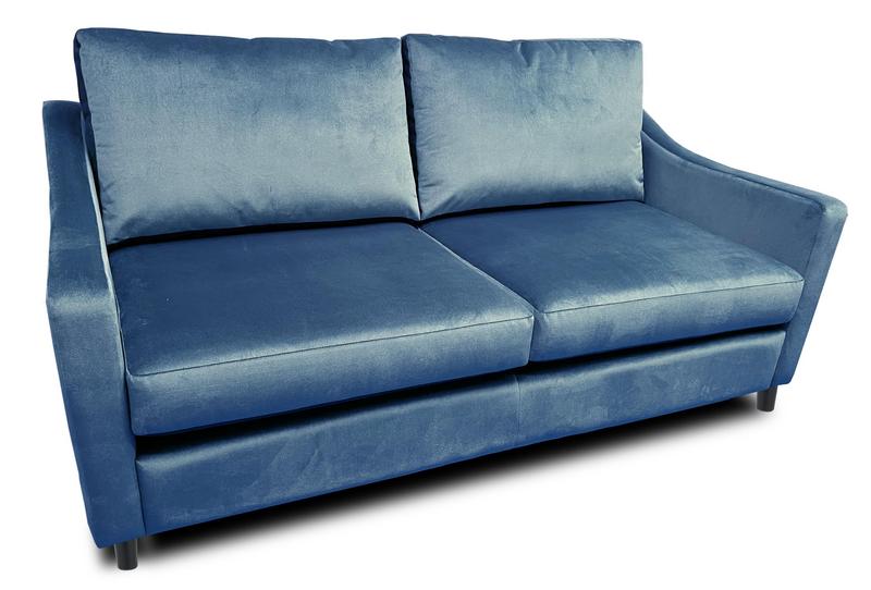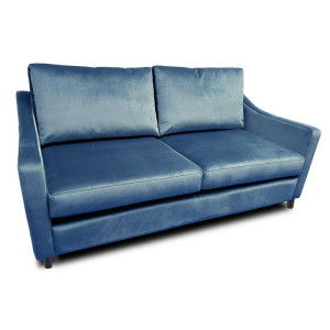 - A three-seater sofa with a slightly sloped backrest and angled armrests, giving it a modern and elegant silhouette.