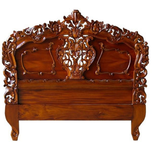 Rococo headboard, suitable for either a kingsize or double bed. Hand carved and finished in mahogany. A really good alternative to buying a complete bedframe where an existing divan bed needs to be retained. We can also supply to special order a superking version. Delivery of the superking may take upto 16 weeks.